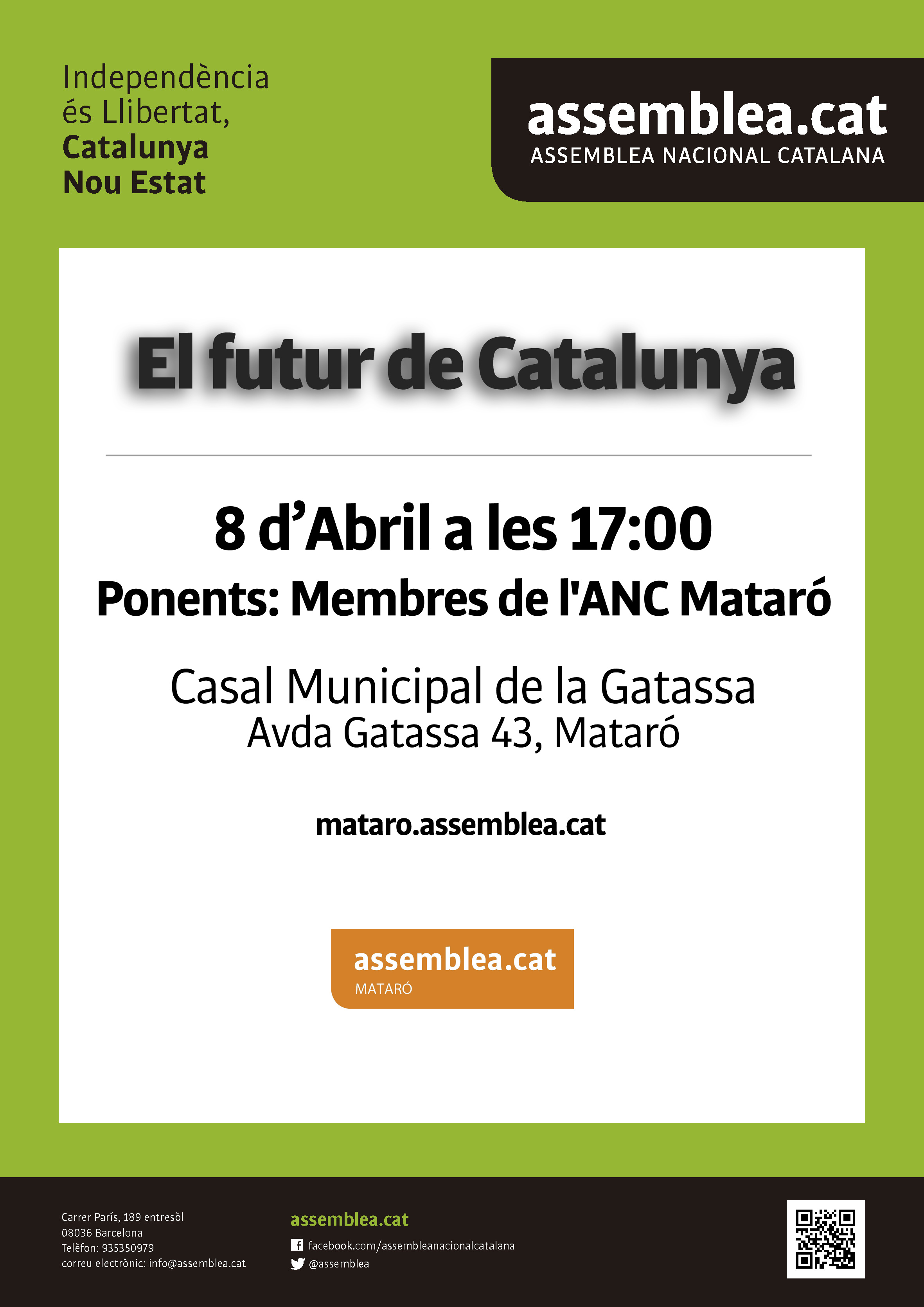 El Futur de Catalunya és el títol de la xerrada-col·loqui que tindrà lloc el proper 8 d’abril a les 17 h, al Casal Municipal de la Gatassa (Av. Gatassa 43) de Mataró.