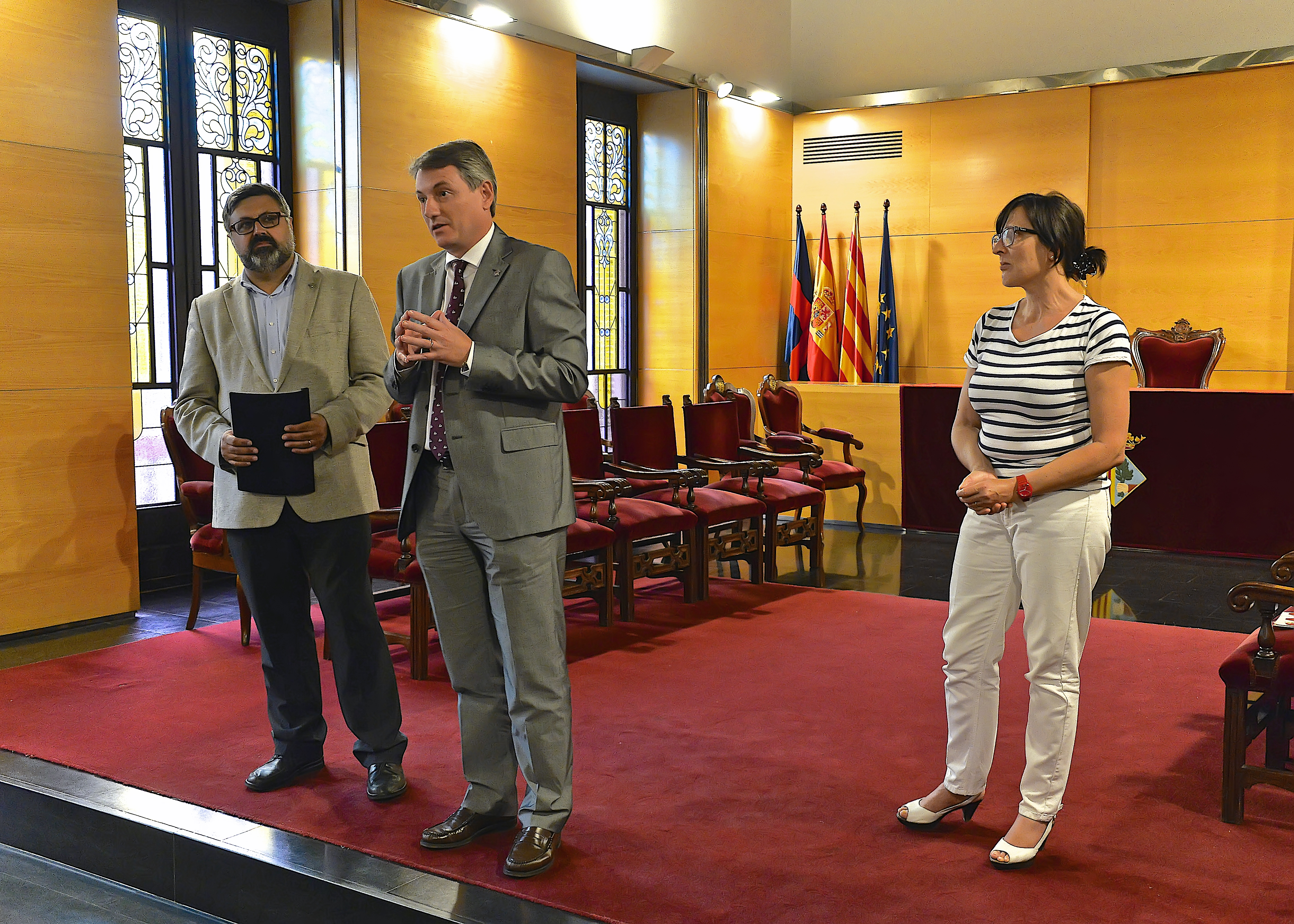 L’acte de lliurament va tenir lloc en sessió pública al Saló de Sessions de l’Ajuntament. La coordinadora local d’ANC Rosa Guanyabens va lliurar el plec de documents al Sr. Alcalde i va llegir la llista de les entitats signants. En el seu parlament, l’alcalde Joan Mora va manifestar tenir “una mica de pell de gallina” per aquesta declaració de de les entitats i va refermar el compromís propi amb la consulta. També va remarcar la necessitat d’unitat del poble i de les forces polítiques: “ens en sortirem si som capaços d’arribar junts fins al final”. Finalment, va deixar clar que, arribat el moment, “l’Ajuntament farà el que digui el Parlament”, deixant de banda el que puguin dir altres.