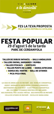 El dissabte 29 d’agost a les cinc de la tarda, la territorial de Mataró d’Assemblea Nacional Catalana, amb la col•laboració de Òmnium Mataró-Maresme, organitza una festa popular al Parc de Cerdanyola de Mataró.