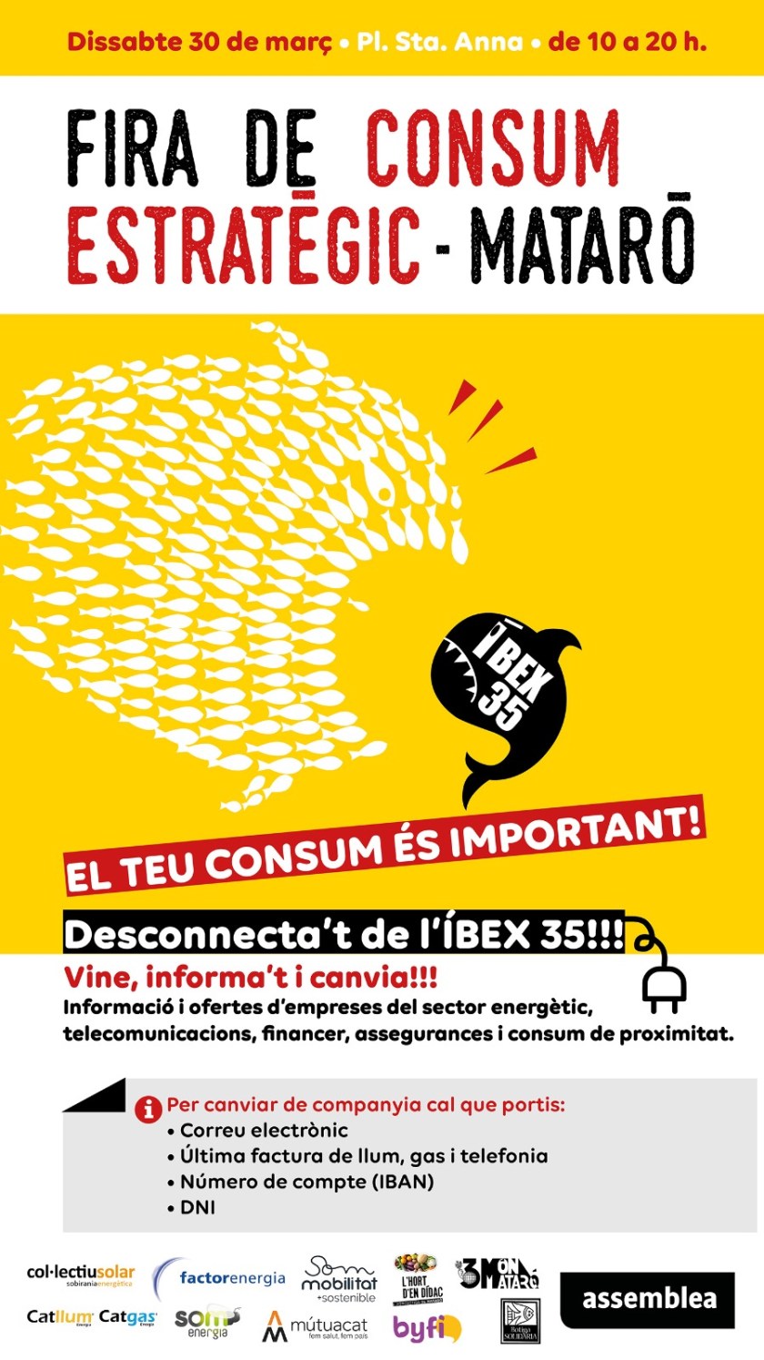 El dia 30 de març de 10h-20h, ANC Mataró organitza la Fira de Consum Estratègic a la Plaça Santa Anna!