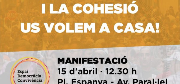 L’Espai Democràcia i Convivència, integrat per ANC, Òmnium Cultural i un centenar d’entitats i sindicats més, convoca una gran manifestació a Barcelona el 15 d’abril
